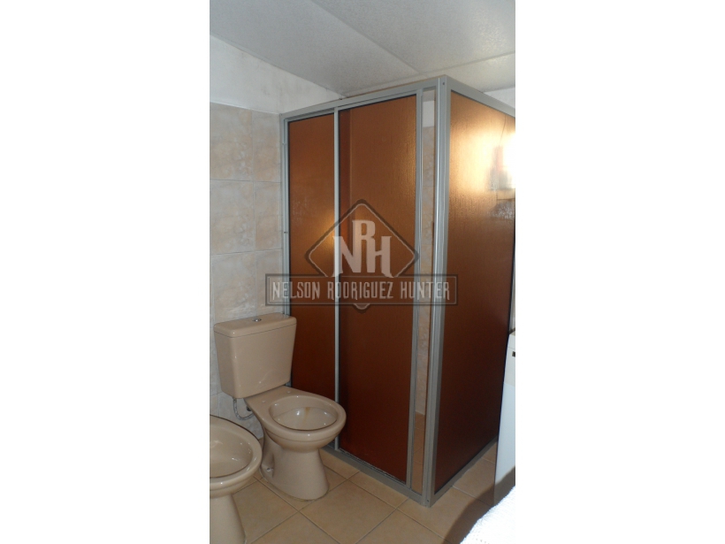 Casa principal de tres dormitorios, cocina comedor, linving, estar con estufa a leña y baño.